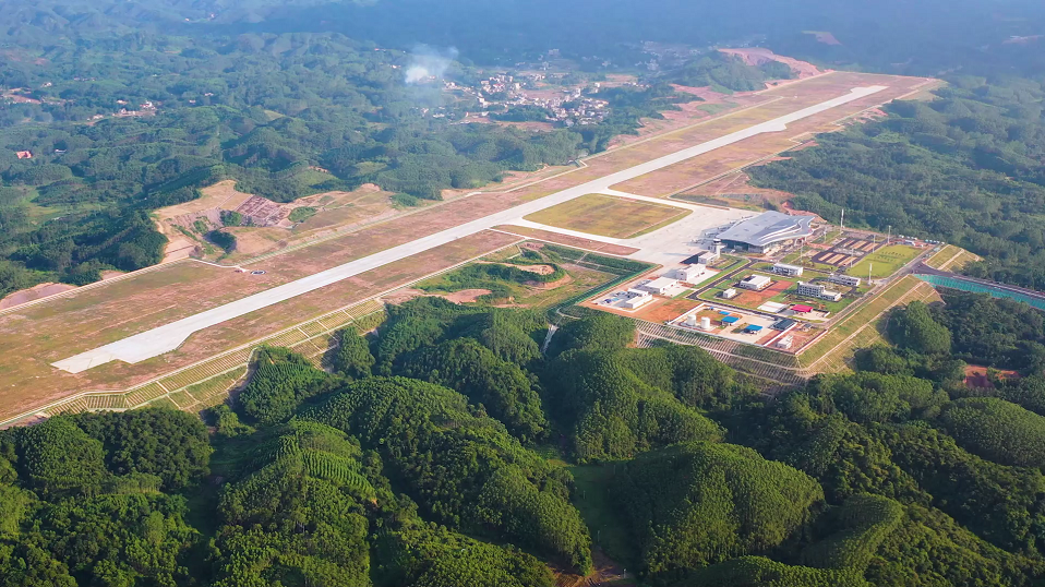 由中國一冶承建的廣西玉林福綿機場是全國首個采用EPC模式建設的民用機場,定位為國內民航運輸支線機場,按年旅客吞吐量150萬人次、貨郵吞吐量5000噸目標設計建設,飛行區等級指標4C。航站樓樓頂設計圓潤天窗,寓意美玉;兩根大型支柱象征雙木成林。該項目的建成投用對于完善廣西機場布局具有重大意義。